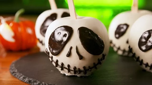 Bring a touch of Halloween Town to your dessert table with these Jack Skellington Candy Apples!